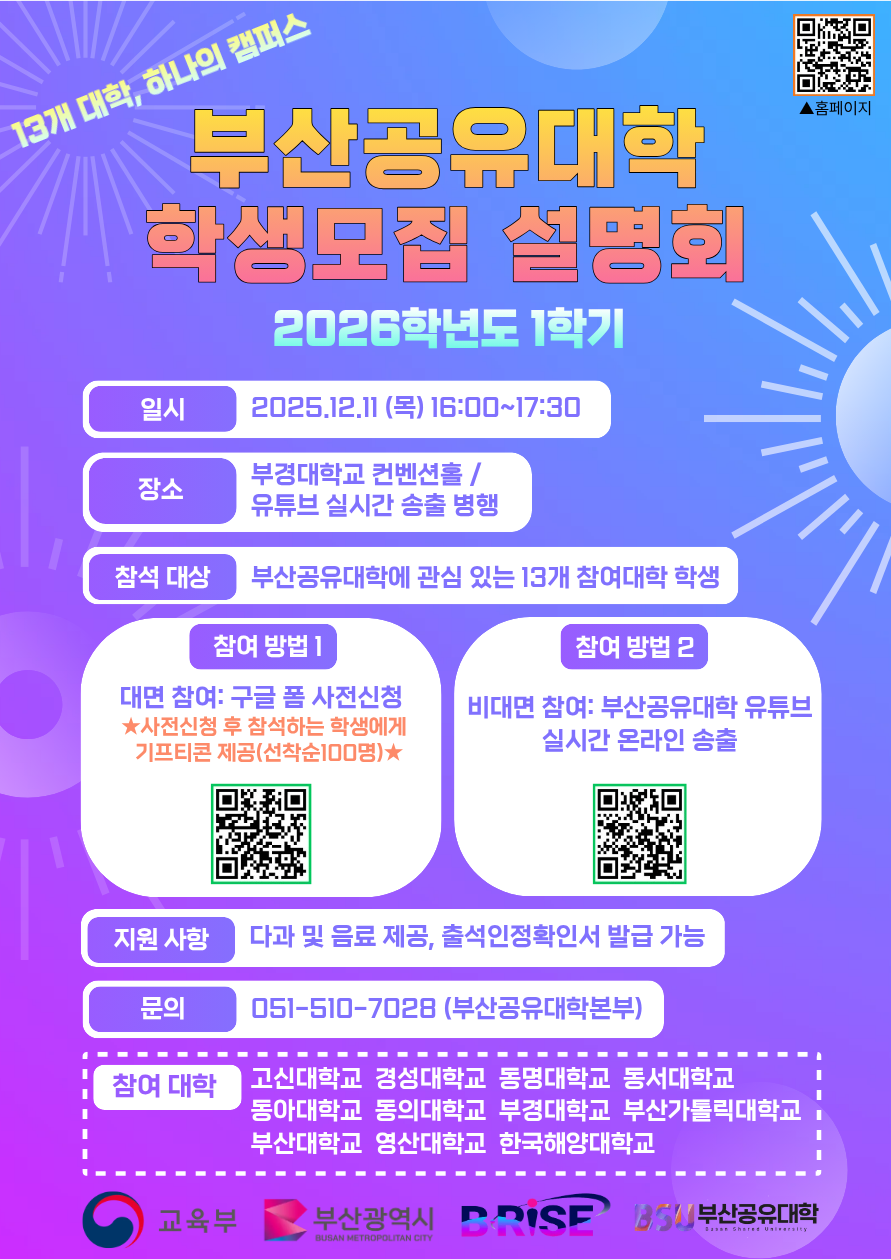 | 2026학년도 부산공유대학 학생모집 설명회 개최 안내 | |||